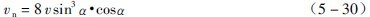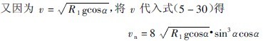 有關,k可直接由表3-5-3中查取。又D0=2R0,則“中間縮聚層”上的一個球落到落回點襯板上的法向沖擊動能En為