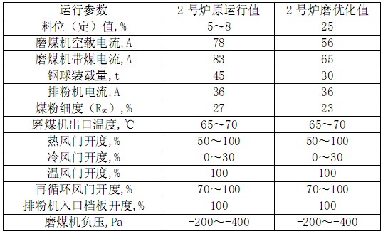 表1 制粉系統(tǒng)優(yōu)化運(yùn)行參數(shù)